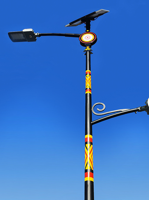 黑龍江金太陽(yáng)光電有限公司為大力推廣寒地太陽(yáng)能路燈在東北地區(qū)的普及應(yīng)用,為新時(shí)代的新農(nóng)村設(shè)計(jì)了多款民族風(fēng)情太陽(yáng)能路燈,在保證光照度的情況下,在款式上爭(zhēng)新創(chuàng)優(yōu),為農(nóng)村的色彩增添一道靚麗的風(fēng)景線。使用金太陽(yáng)光電生產(chǎn)的寒地太陽(yáng)能景觀路燈,可以耐低溫、耐冰雪、光照時(shí)間長(zhǎng),使用壽命長(zhǎng)等特點(diǎn)。